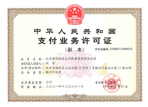 支付通來自于北京海科融通支付服務(wù)股份有限公司,這家公司是國內(nèi)首批拿到央行支付牌照的國資企業(yè)。