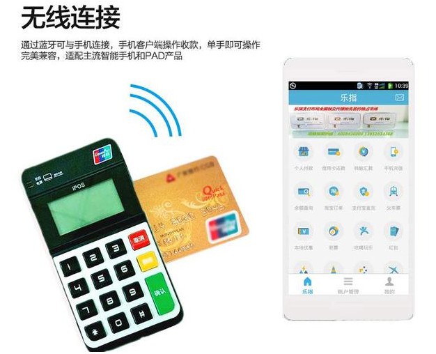 藍牙MPOS機主要用于個人刷卡消費,POS機費率在0.55%-0.69%之間。藍牙MPOS機刷卡商戶靈活多變,體積小巧方便攜帶,隨時隨地刷卡無處不在,解決后顧之憂。